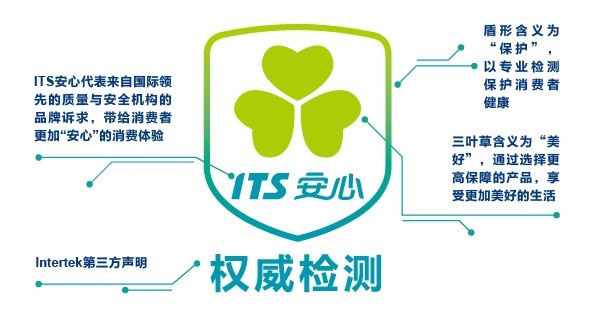 ITS盾形三叶草标志是为了帮助有责任的企业展现对质量的管控、指导消费者购买决策和保障消费者利益诞生的。ITS代表来自国际领先的独立第三方机构的专业验证,以“独立检测”的属性,帮助经过测试的产品传达核心信息,以公开透明的方式赋予消费者更多保障、促进理性购买,畅享安心生活。