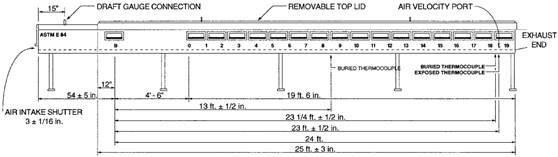 ASTM E84的测试设备是一个隧道炉,长约7.6m,详见下图。