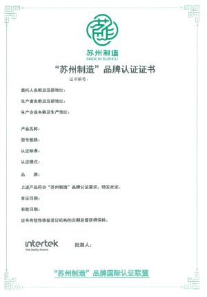 适用于“苏州制造”产品认证。